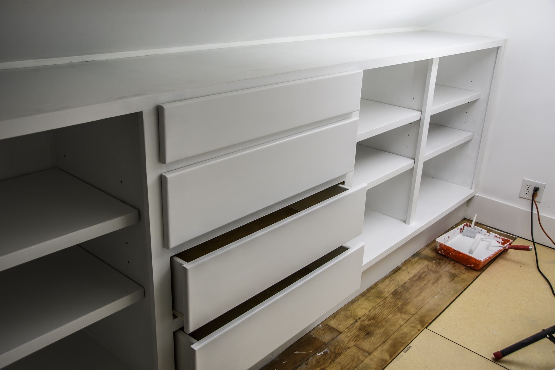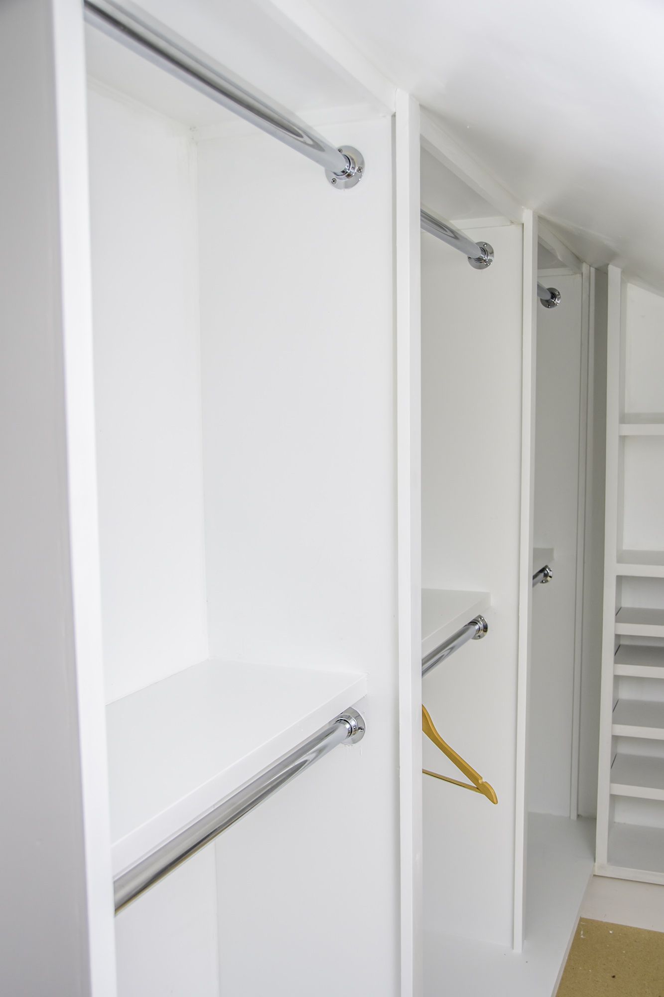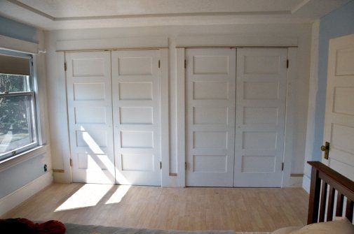 These closets are at opposite ends of the room. I built the odd size bypass doors in my shop.